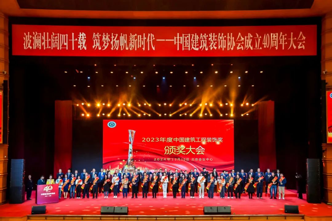 2024年12月10日,中國建筑裝飾協會九屆四次理事會、九屆六次常務理事會暨中國建筑裝飾協會成立40周年大會在北京盛大召開,會上同期發布《2023年度中國建筑裝飾協會行業綜合數據統計結果》,并頒發“中國建筑工程裝飾獎”。