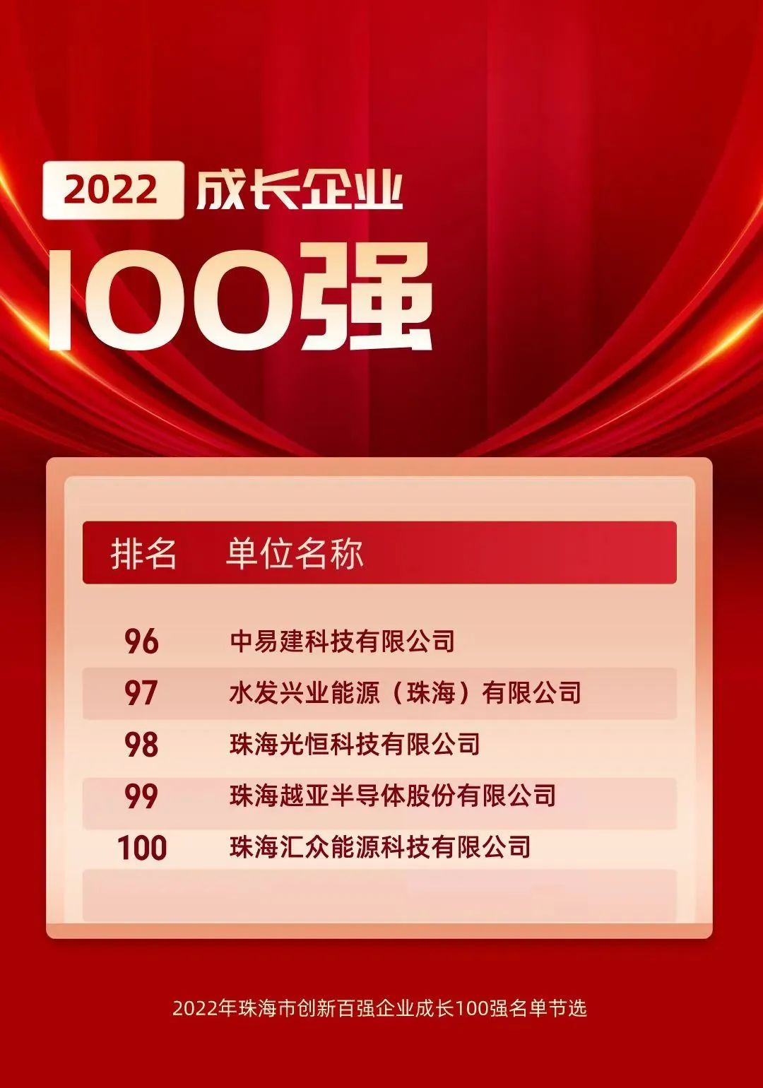 中 易 建 科 技 榮 登 2022 成 長(zhǎng) 百 強(qiáng) 企 業(yè)